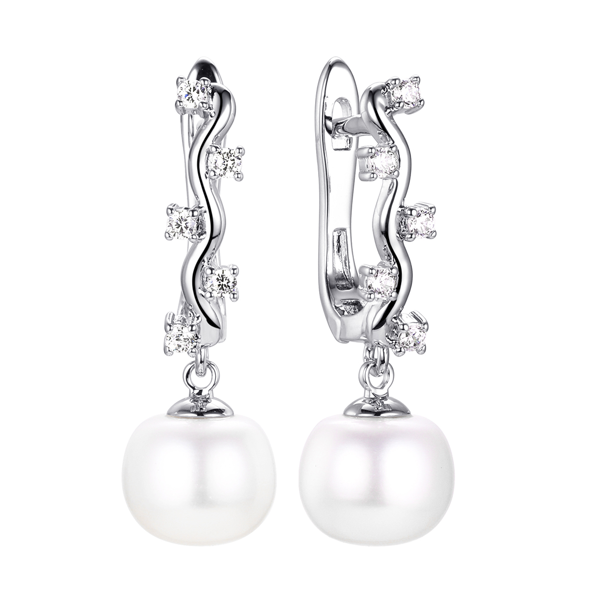 Серьги с жемчугом (культ.) и куб.циркониемАртикул 0220921105a