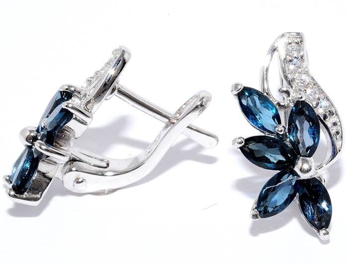 Серьги с топазом "london blue"и куб.циркониемАртикул 22ppe2879-114-107